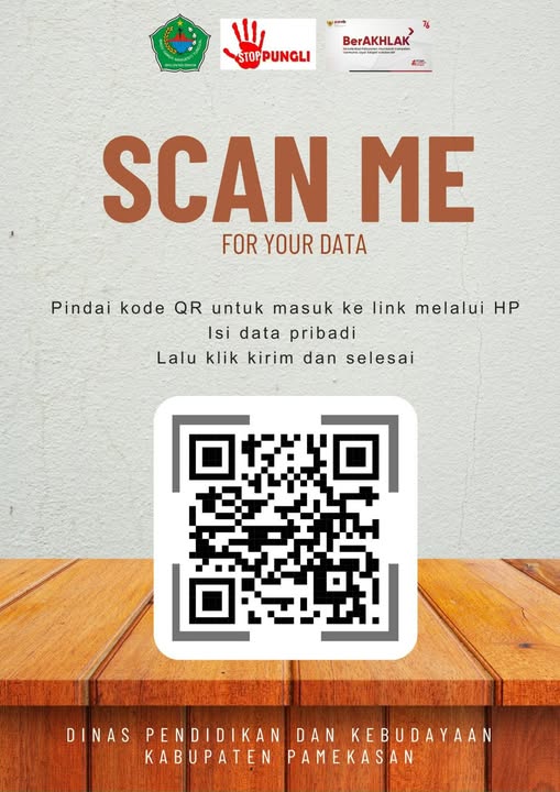 Mulai hari ini, (Kamis, 02 Januari 2025) Bapak/Ibu yang berkunjung ke kantor Disdikbud Pamekasan diwajibkan untuk mengisi data diri melalui scan barcode ini. Jangan lupa ya! Terimakasih 🙏